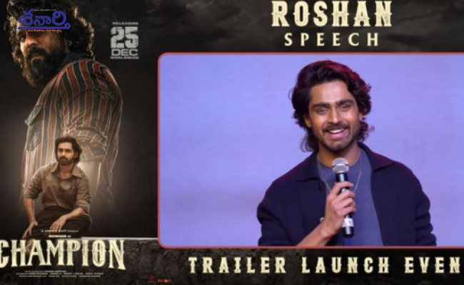 ట్రైలర్ లాంచ్ ఈవెంట్కు గ్లోబల్ స్టార్ రామ్ చరణ్ ముఖ్య అతిథిగా హాజరయ్యారు.ఆయన రోషన్ మేకపై ప్రశంసలు కురిపించారు.పోస్టర్లో రోషన్ను చూస్తే యూరోపియన్ యాక్షన్ హీరోలా ఉన్నాడని అన్నారు.తన కెరీర్లో ‘మగధీర’ ఎంత కీలకమో, రోషన్కు ‘ఛాంపియన్’ కూడా అంతే ముఖ్యమైన సినిమా కావాలని మనస్ఫూర్తిగా కోరుకున్నారు.