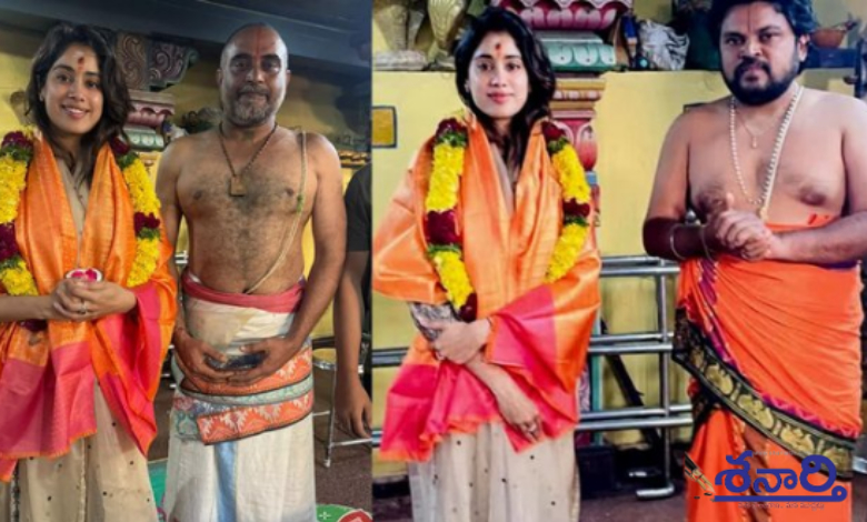 అలనాటి అందాల నటి శ్రీదేవి తనయ జాన్వీకపూర్ హైదరాబాద్ వచ్చారు. అమీర్ పేటలోని మధురానగర్ లోని హనుమాన్ మందిరంలో ప్రత్యేక పూజలు చేశారు. అర్చకులు ఆమెకు తీర్థప్రసాదాలు అందించారు. జాన్వీ హైదరాబాద్ వచ్చిందని తెలిసి పెద్ద ఎత్తున అభిమానులు అక్కడికి చేరుకున్నారు. ఆమెతో సెల్ఫీలు దిగేందుకు స్థానికులు పోటీ పడ్డారు. ఇందుకు సంబంధించిన ఫొటోలు, వీడియోలు సోషల్ మీడియాలో వైరల్ అవుతున్నాయి.