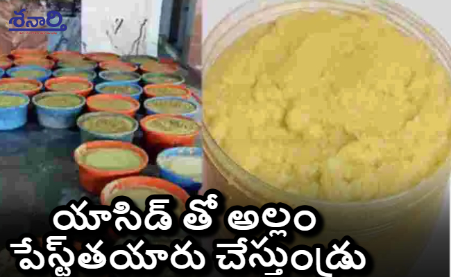 7 టన్నుల నకిలీ పేస్ట్ స్వాధీనం రంగారెడ్డి జిల్లాలో భారీగా నకిలీ (Ginger garlic paste) అల్లం వెల్లుల్లి పేస్టును ఎస్ఓటీ పోలీసులు పట్టుకున్నారు. బుద్వేల్ గ్రీన్ సిటీలో నకిలీ అల్లం వెల్లుల్లి పేస్టు తయారు చేస్తున్న ఫ్యాక్టరీపై సైబరాబాద్ ఎస్ఓటీ పోలీసులు దాడులు నిర్వహించారు. రూ.15 లక్షల విలువైన 7 టన్నులకు పైగా నకిలీ (Ginger garlic paste) అల్లం వెల్లుల్లి పేస్టును గుర్తించి స్వాధీనం చేసుకున్నారు. సింథటిక్ కలర్స్, యాసిడ్స్ , కెమికల్ వాటర్ తో అల్లంవెల్లులి పేస్టు తయారు చేస్తునట్టు గుర్తించారు. అప్నా ఎంటర్ ప్రైజేస్ పేరుతో ఫ్యాక్టరీని రన్ చేస్తున్న అమీర్ నిజాన్ అనే వ్యక్తి అదుపులోకి తీసుకున్నారు. కేసు నమోదు చేసుకున్న పోలీసులు దర్యాప్తు చేస్తున్నారు 7 టన్నుల నకిలీ పేస్ట్ స్వాధీనం
