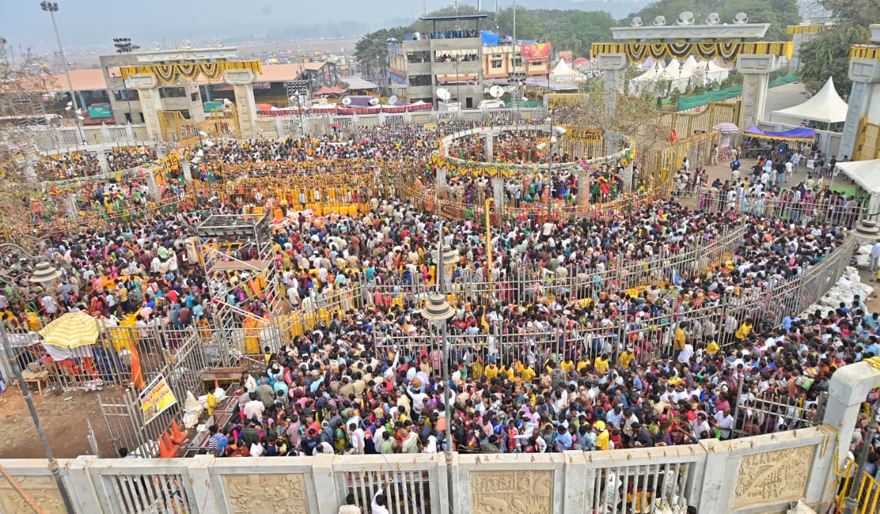 మేడారం (Medaram) మహాజాతర సందర్భంగా వనదేవతలు సమ్మక్క–సారలమ్మ గద్దెలపై కొలువు దీరడంతో మేడారం పరిసర ప్రాంతాలు భక్తజన సంద్రంగా మారాయి. అమ్మల దర్శనానికి లక్షలాది మంది భక్తులు తరలిరావడంతో పాటు, దర్శనం పూర్తిచేసుకుని తిరిగి తమ ఇండ్లకు వెళ్తున్న వారి సంఖ్య కూడా భారీగా ఉండటంతో జాతర మార్గాలన్నీ రద్దీగా మారాయి. ఈ క్రమంలో (Medaram) మేడారం వెళ్లే ప్రధాన రహదారిపై భారీ ట్రాఫిక్ జామ్ ఏర్పడింది.
