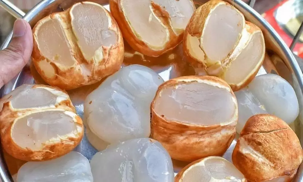 వేసవి(SUMMER) వచ్చిందంటే చాలు ఊష్ణ తాపానికి ఉపశమనం కోసం చూస్తుంటాం. ఆ తాపం నుంచి కాస్తా రిలీఫ్ ఇచ్చేవి తాటి ముంజలు. హైదరాబాద్ మహా నగరంలో తాటిముంజలు అందుబాటులో ఉన్నాయి. హైదరాబాద్ లో పలు ప్రాంతాల్లో ముంజల అమ్మకాలు ఊపందుకున్నాయి. పెద్ద ఎత్తున ప్రజలు తాటి ముంజలు కొనేందుకు ఆసక్తి చూపుతున్నారు. తాటి ముంజలు తింటే ఆరోగ్యానికి ఎన్నో ఉపయోగలున్నాయని, వేసవి (SUMMER) తాపం నుంచి ఉపశమనం కలుగుతుందని విక్రేతలు చెబుతున్నారు. కొనేవారు కూడా అది నిజమే నంటున్నారు. కేవలం వేసవిలో మాత్రమే ఇవి విరివిగా లభిస్తాయి. గ్రామాల్లో తాటిచెట్లు ఎక్కువగా ఉంటాయి కాబట్టి అక్కడ ముంజలు విరివిగా దొరుకుతుంటాయి. నగరాల్లో ఎక్కువ ధర పెట్టి కొనుగోలు చేయాల్సి ఉంటుంది.