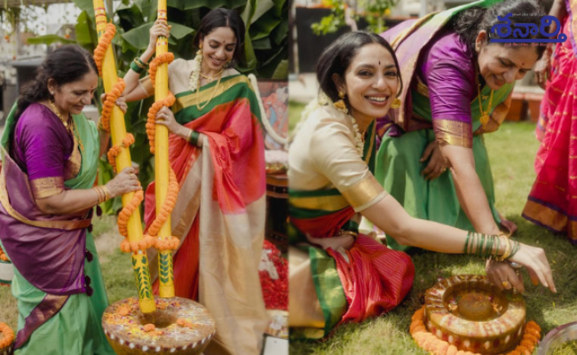 అక్కినేని నటవారసుడు నాగచైతన్య, నటి శోభితా ధూళిపాళ్ల (Sobhita Dhulipalla) వివాహబంధంలో ఒక్కటవబోతున్నారు. వీళ్ల నిశ్చితార్థం వేడుకగా జరిగింది. పెళ్లి పనులు ప్రారంభమయ్యాయని వధువు శోభితా ధూళిపాళ్ల తెలిపారు. పసుపు దంచుతున్న ఫొటోలను శోభితా తన ఇన్స్టాలో షేర్ చేశారు. ‘గోధుమరాయి పసుపు దంచడంతో పనులు ప్రారంభమయ్యాయి’అని క్యాప్షన్ పెట్టారు. ఎరుపు, గోధుమ రంగులు కలిగిన పట్టు చీరలో శోభిత మెరిసిపోతూ కనిపించింది. ప్రస్తుతం ఆ ఫొటోలు వైరల్గా మారాయి. పెళ్లి ఎక్కడ, ఎప్పుడో చెప్పాలని అభిమానులు కోరుతున్నారు.